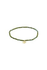 Un magnifique bracelet scintillant composé de petites perles de verre à facettes dans une magnifique nuance de vert foncé. Avec un logo Pilgrim discret.